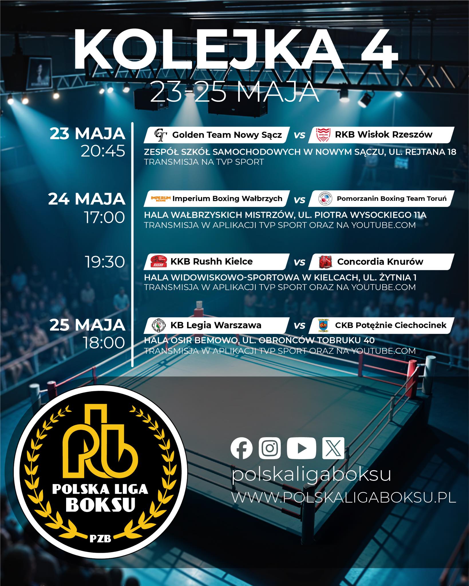 W sobotnich meczach 4 kolejki Polski Ligi Boksu zdecydowany zwycięstwa odniosły zespoły Imperium Boxing Wałbrzych i KKB Rushh Kielce.