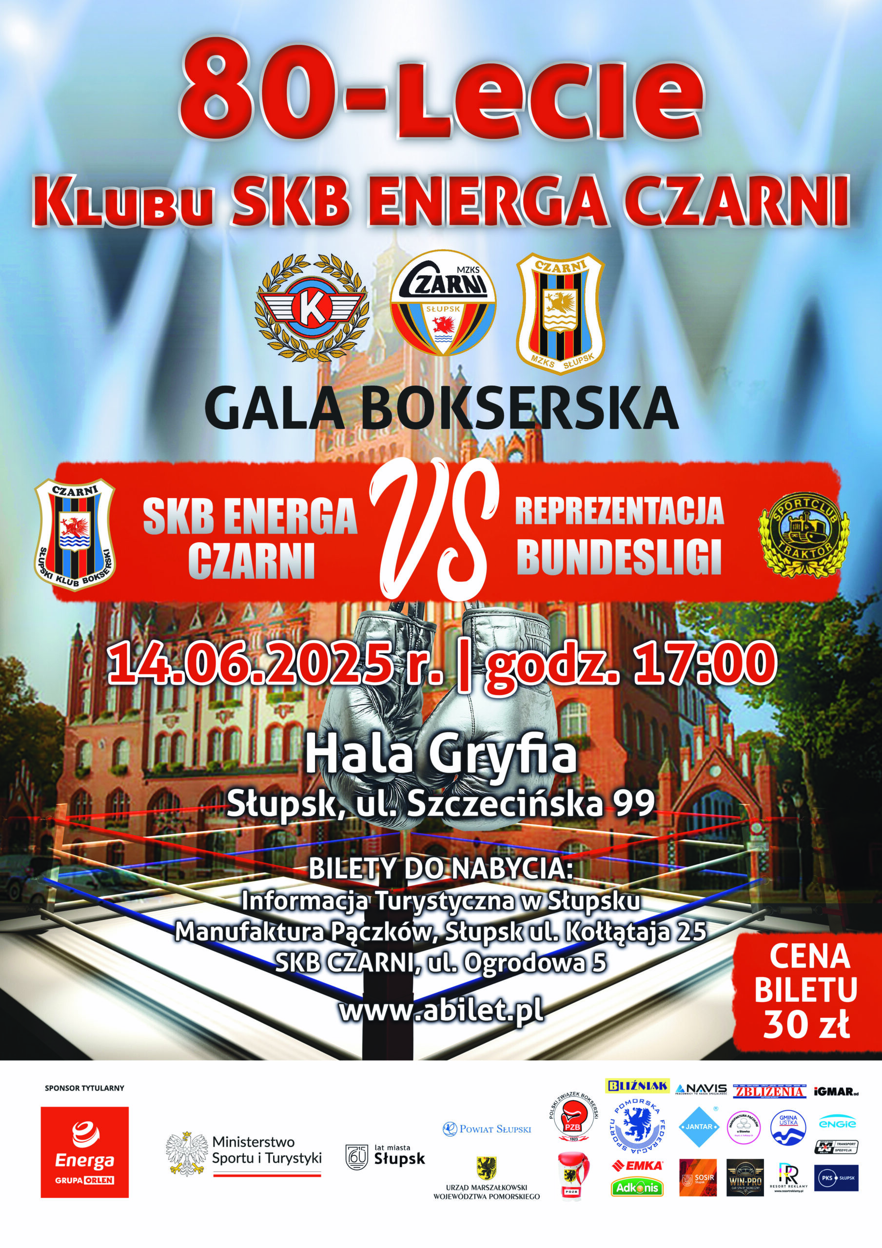 Zapraszamy wszystkich sympatyków boksu i mieszkańców Słupska na Galę Bokserską z okazji 80-lecia Klubu SKB Energa Czarni!
