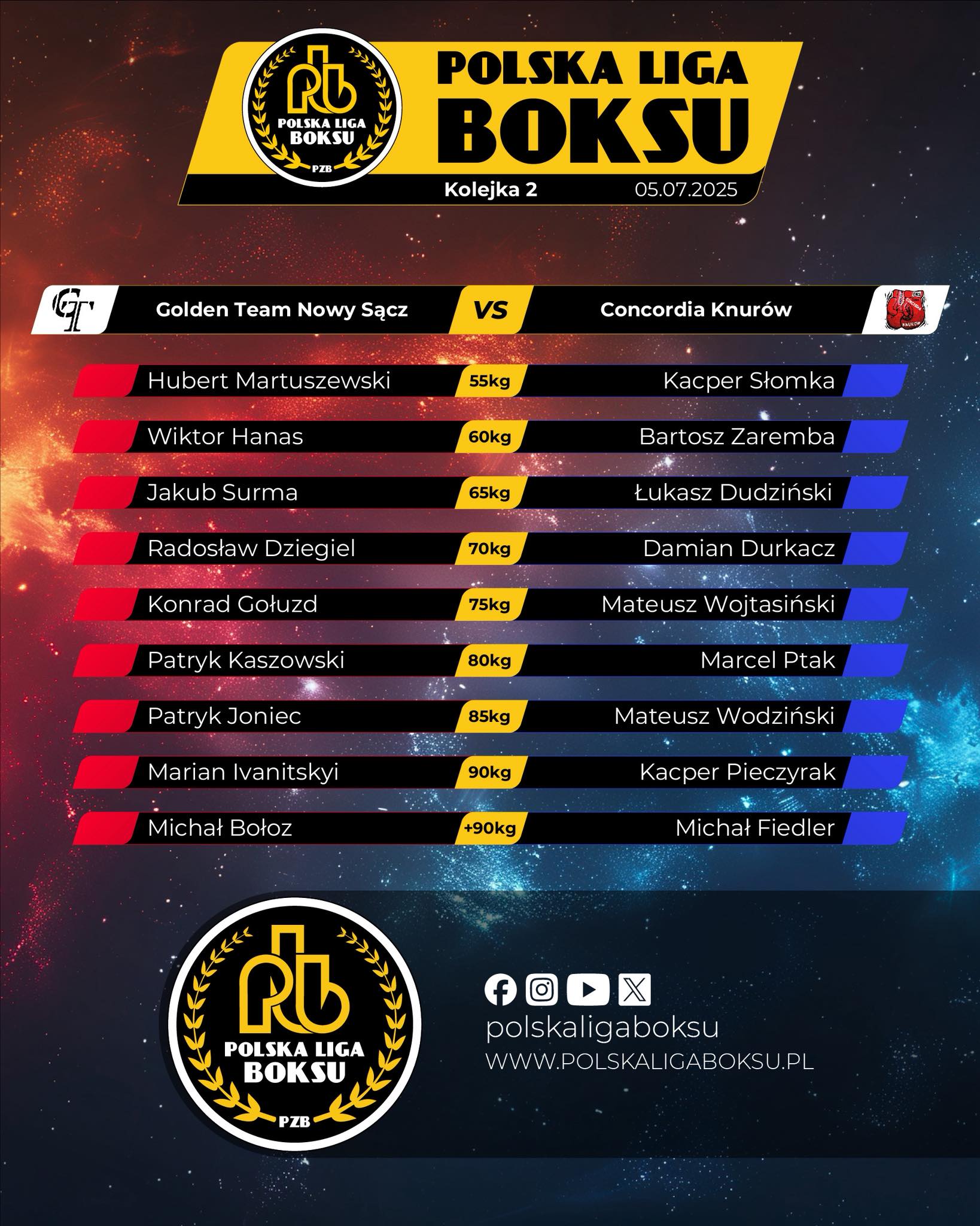 2025-07-06Mocnym akcentem zakończyli pięściarze Concordii Knurów rywalizację w pierwszej rundzie Polskiej Ligi Boksu. W sobotnie popołudnie pokonali na wyjeździe Golden Team Nowy Sącz 16:2.
