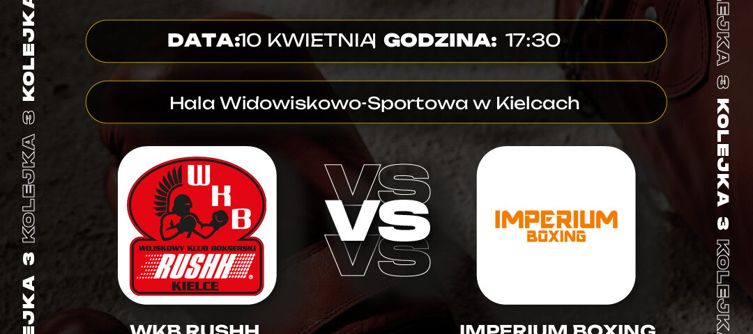 2026-04-04Już dziś zapowiadamy przyszłotygodniową 3 kolejkę Polskiej Ligi Boksu z absolutnym hitem z udziałem medalistów poprzedniego sezonu. W Kielcach wicemistrz kraju Wojskowy Klub Bokserski Rushh spotka się z trzecim zespołem 2025 roku, Imperium Boxing Wałbrzych.