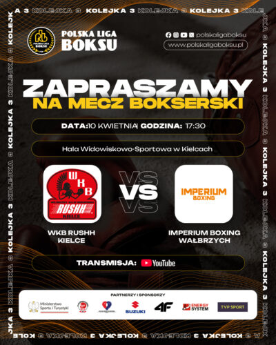 17:30, WKB Rushh Kielce – Imperium Boxing Wałbrzych
