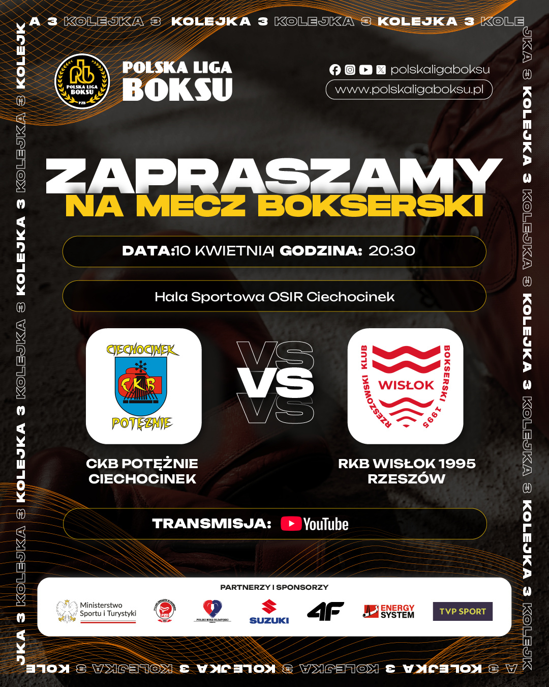 17 kwietnia odbędzie się w Elblągu jubileuszowa, 40. gala Polskiego Związku Bokserskiego i Suzuki Motor Poland – Suzuki Boxing Night. Zapraszamy kibiców na mecz Polska – Kanada. Natomiast do Polskiej Ligi Boksu wracamy pod koniec kwietnia.