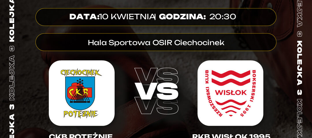2026-04-08W piątek i sobotę (10-11 kwietnia) odbędą się spotkania 3 kolejki Polskiej Ligi Boksu. Po raz pierwszy u siebie walczyć będą pięściarze CKB Potężnie Ciechocinek, a na wyjeździe RTX Golden Team Nowy Sącz.