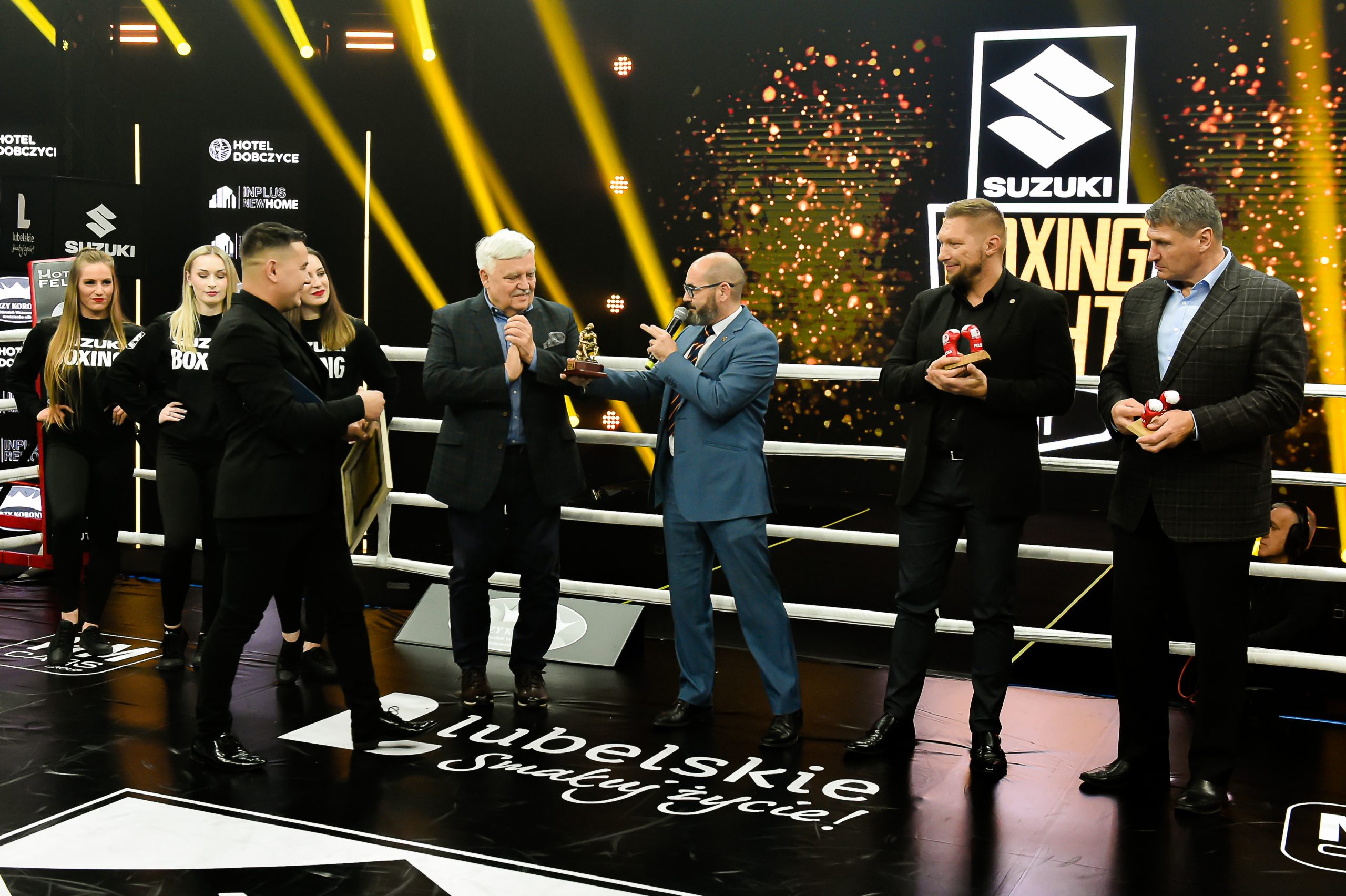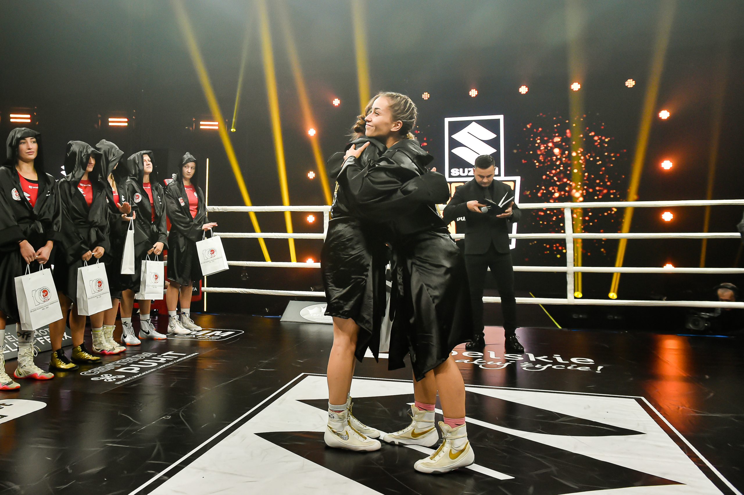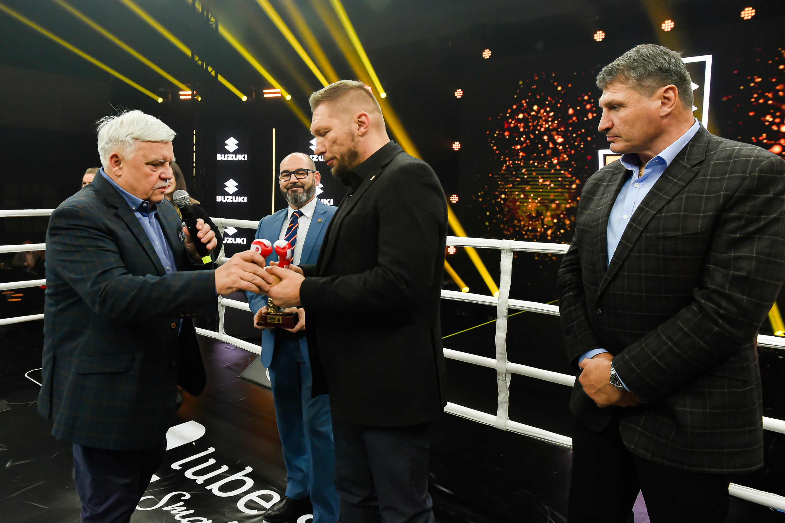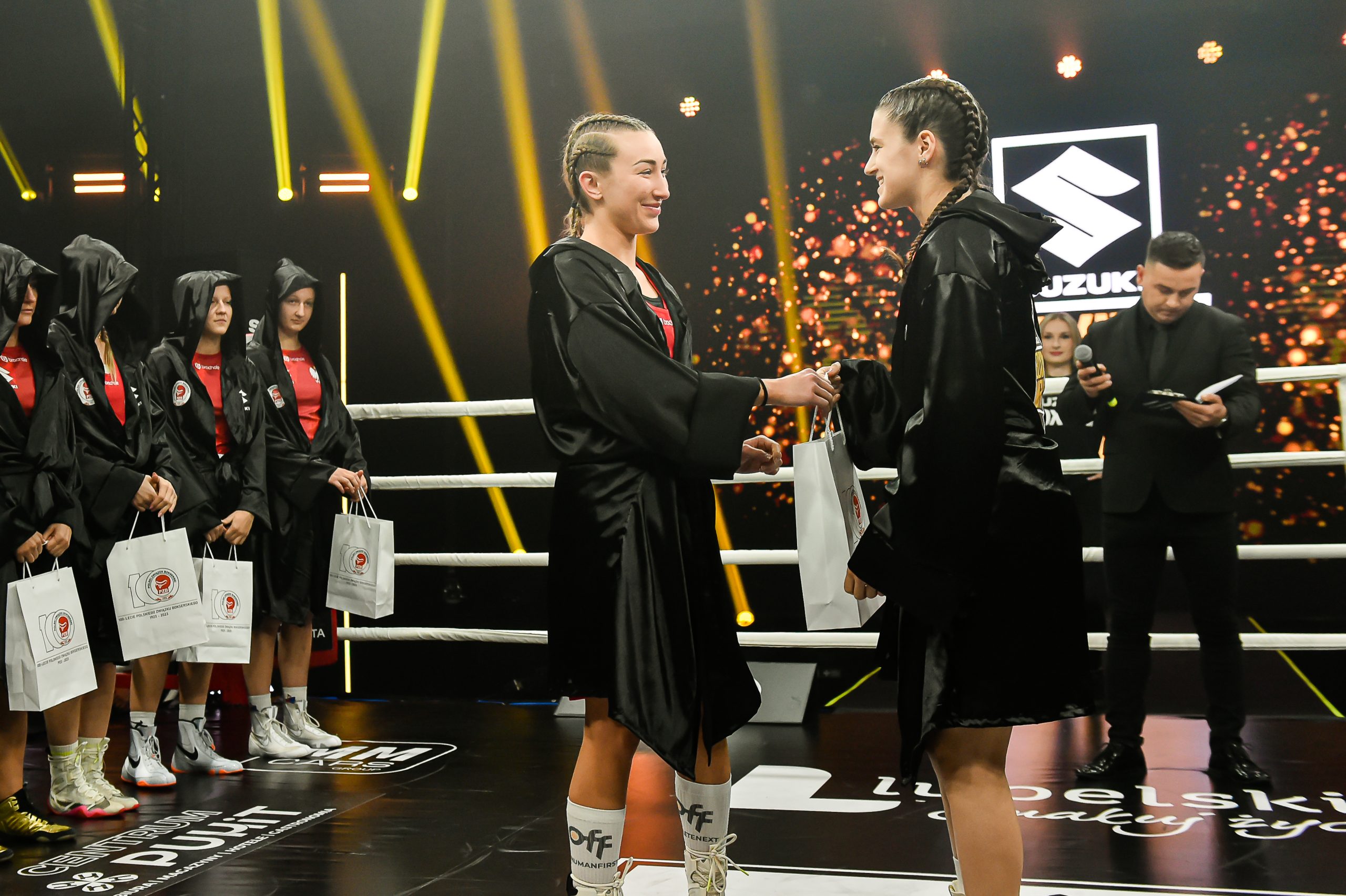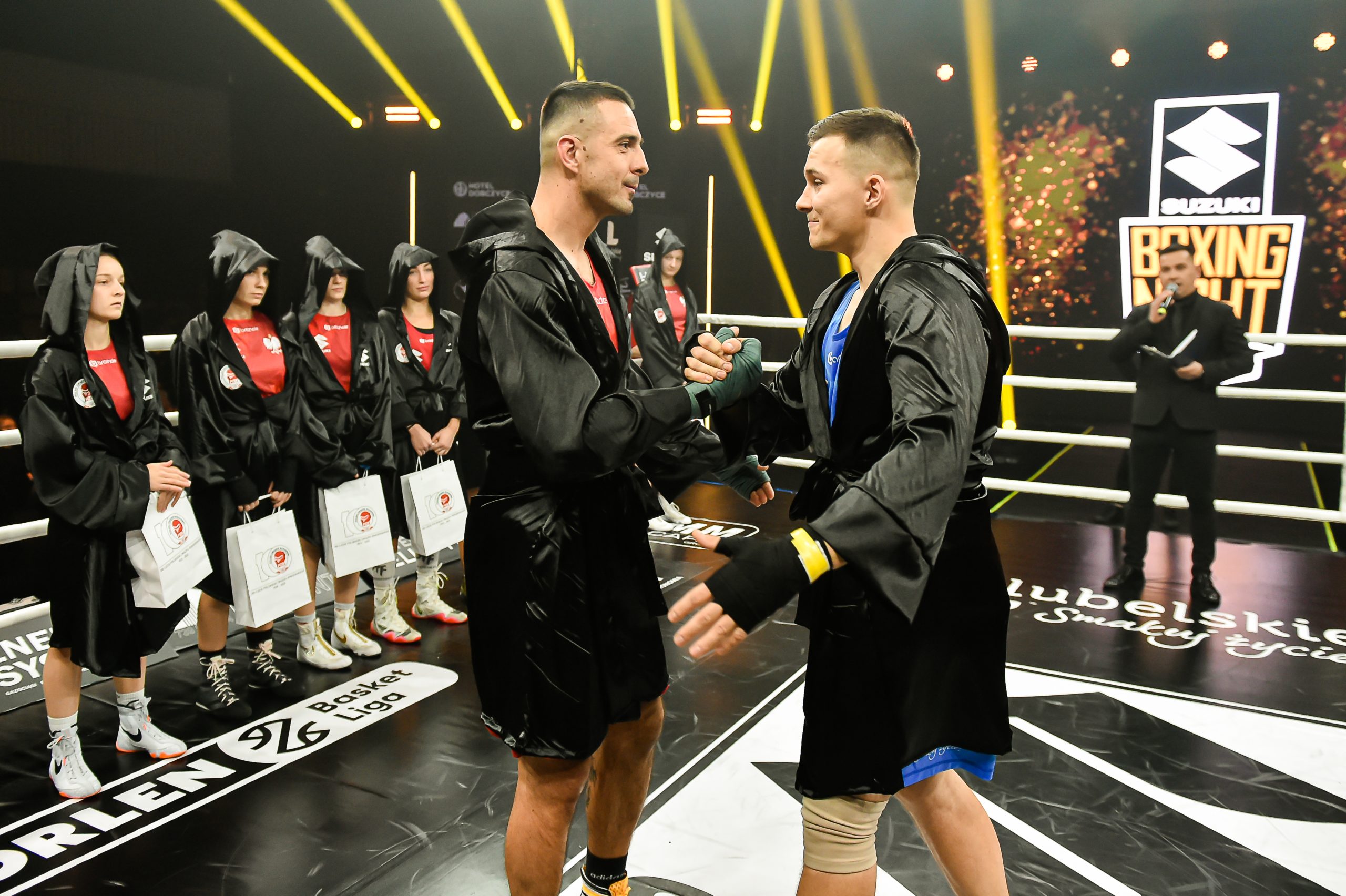 2024-11-24W sobotnią noc w hali sportowej „Suche Stawy” oficjalnie rozpoczęła się gala Suzuki Boxing Night 31, a gościem honorowym wydarzenia był legendarny Andrzej Gołota. Uroczysta prezentacja zawodniczek i zawodników wprowadziła kibiców w atmosferę sportowych emocji, które rozgrywały się na ringu.