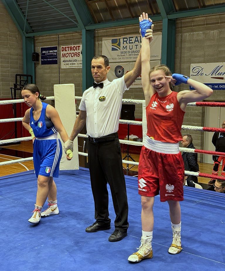 2025-03-29Natalia Niewiadomska (48 kg), Nadia Formela (51 kg), Antonina Hader (57 kg) odniosły zwycięstwa na włoskim ringu. W pierwszym meczu towarzyskim juniorek, Polki przegrały z Włoszkami 6:12 w Fogliano Redipuglia.