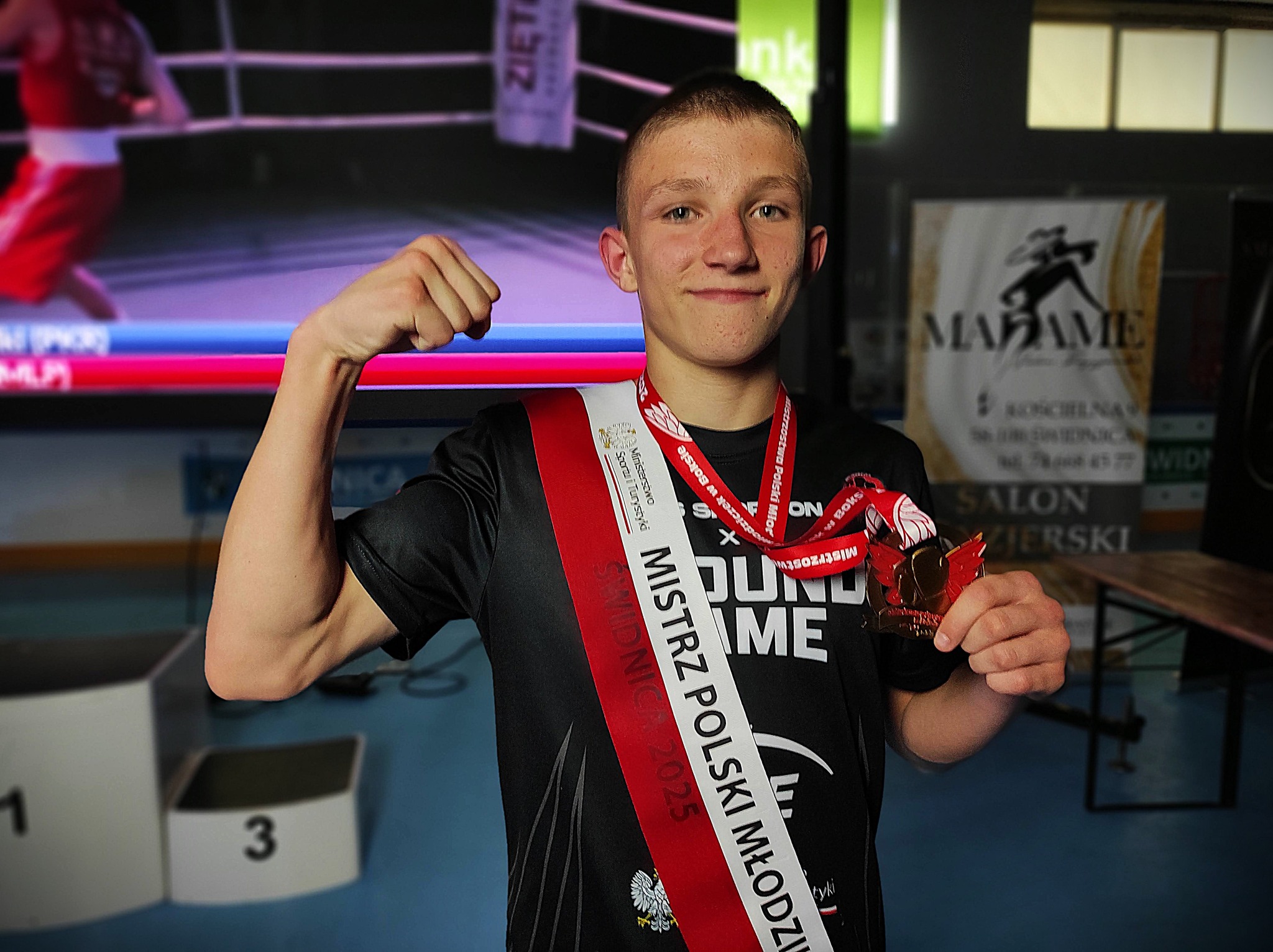 2025-05-27Ksawery Urbański poszedł w ślady starszych braci Aleksa i Fabiana i zdobył w Świdnicy tytuł Mistrza Polski w kategorii młodzików w wadze 48 kg.