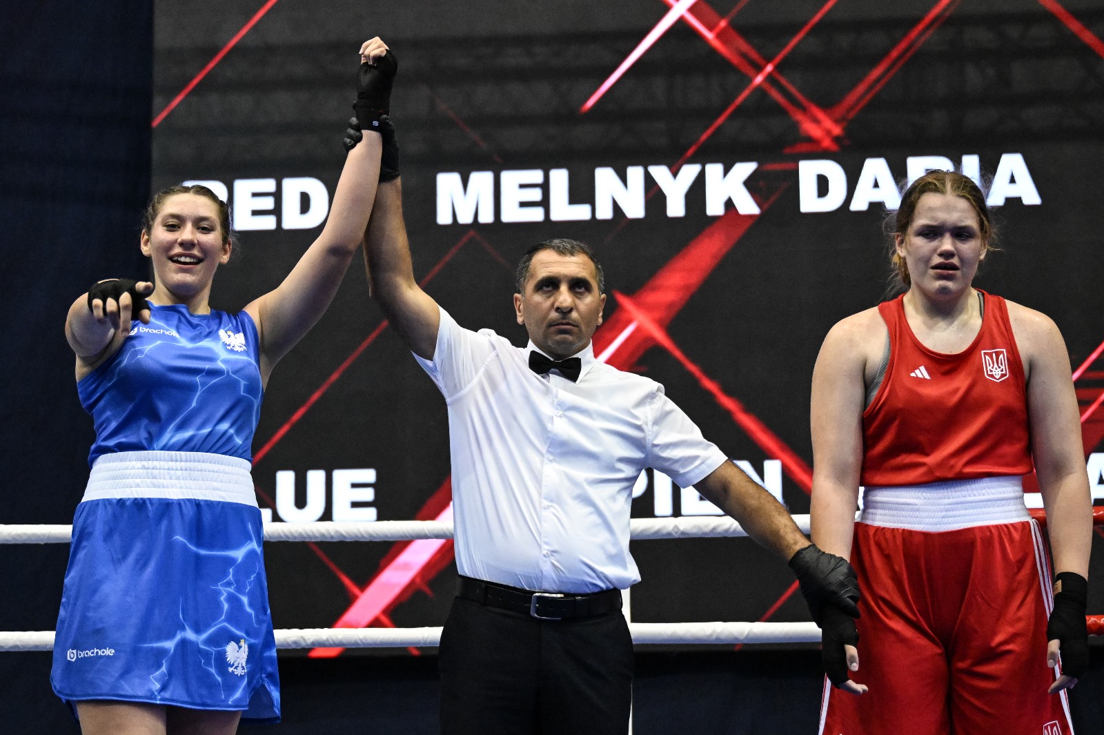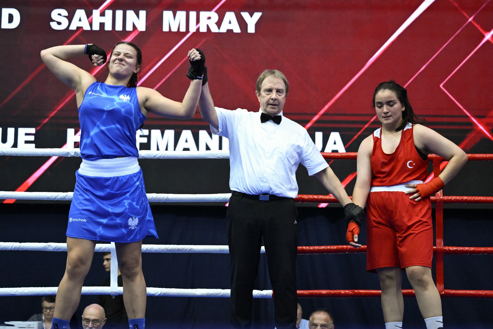 Nicola Kuran przegrała z Ukrainką Veroniką Holub jednogłośnie, zaś Amelia Joachimska z Angielką Alice Cash niejednogłośnie. Po 2 rundach był remis 1-1, więc decydowało ostatnio 90 sekund walki.